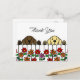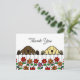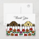 Tarjeta de agradecimiento para fanáticos de los labradores: ¡Dúo de labradores observándote! Detrás del macizo de flores, un inocente labrador chocolate y un labrador amarillo parecen querer decirte algo. Ilustración divertida y caprichosa de Naomi Ochiai de Japón.