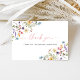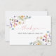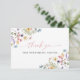 Muestre su gratitud con una elegancia atemporal utilizando nuestra tarjeta de agradecimiento para fiesta de boda de flores silvestres de mariposas. Con una sofisticada combinación de flores silvestres vibrantes y mariposas elegantes, esta tarjeta es perfecta para transmitir agradecimiento a los invitados de una manera elegante y memorable. Agregue el nombre de la novia y un mensaje personalizado para un toque personalizado que complementa cualquier evento con tema floral.