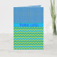 Una tarjeta de moda 'Gracias' a personalizar, con un patrón de mezcla de puntos de polka, en equipo con un patrón de zigzag de cheurones verde neón y turquesa en un fondo verde esmeralda. Parte de la gama de "Blue Moons" de Posh & Painterly.