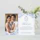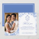 Tarjeta De Agradecimiento Delft Blue Floral Chinoiserie Monogram Wedding