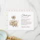 Expresa tu gratitud con estilo con nuestra tarjeta de agradecimiento para Brunch y Bubbly Champagne Flowers Bridal Shower. Con los mismos elementos de diseño elegantes que nuestra invitación, esta encantadora tarjeta de agradecimiento está adornada con copas de champán, flores floreciendo y globos en forma de corazón, todos en varios tonos de champán. El delicado patrón de papel pintado en la parte posterior, acentuado con pequeños lazos, añade un toque extra de sofisticación. Envía tus sinceros agradecimientos con un mensaje personalizado en el interior, creando un recuerdo memorable de aprecio para tus invitados.
