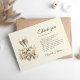 Expresa tu gratitud con estilo con nuestra tarjeta de agradecimiento para Brunch y Burbujas de Champagne Floral para Despedida de Soltera. Con los mismos elementos de diseño elegantes que nuestra invitación, esta encantadora tarjeta de agradecimiento está adornada con copas de champán, flores floreciendo y globos en forma de corazón, todos en varios tonos de champán. El delicado patrón de papel pintado en la parte posterior, acentuado con pequeños lazos, añade un toque extra de sofisticación. Envía tus sinceras gracias con un mensaje personalizado en el interior, creando un recuerdo memorable de aprecio para tus invitados.