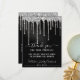 Esta es la tarjeta de descuento para clientes perfecta para una empresaria moderna, elegante, femenina y con estilo. Este diseño glamuroso y chic presenta gotas de purpurina plateada falsas impresas sobre un fondo metálico negro bruñido. La tipografía es un elegante guión cursivo con una fuente serif moderna para que coincida. Es chic, bonita, única y lujosa; la forma perfecta de anunciar tu negocio y estilizar tu material de marketing y publicidad para tus clientes.