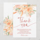 Muestre su sincera gratitud con nuestra tarjeta de agradecimiento para despedida de soltera, Boho Terracotta Hand-Painted. Esta elegante tarjeta presenta un impresionante arreglo de flores de acuarela en suaves tonos de durazno, coral y verde, lo que le da un cálido y acogedor sentimiento. Las delicadas flores enmarcan hermosamente la parte superior de la tarjeta, añadiendo un toque de encanto artístico y elegancia bohemia. El sentido mensaje de "Gracias" se muestra de manera prominente en una fuente de letra estilizada, añadiendo un toque de sofisticación y calidez. La combinación de tipografía elegante y elementos florales boho hace que esta tarjeta sea perfecta para agradecer a los invitados después de una despedida de soltera. Ideal para transmitir un sincero agradecimiento, esta tarjeta captura la belleza y la alegría de su día especial, lo que la convierte en un recuerdo memorable