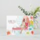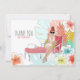 Tarjeta de agradecimiento para despedida de soltera en la playa con flores tropicales, brillo y la futura novia descansando. Disponible con cabello rubio, marrón o pelirrojo y tono de piel claro u oscuro.