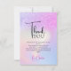 Muestre su agradecimiento con esta elegante tarjeta de agradecimiento que presenta un gradiente holográfico rosa y púrpura brillante. El texto totalmente personalizable le permite agregar un toque personal para sus invitados de la despedida de soltera.