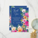 Expresa tu gratitud con esta elegante y moderna ilustración de flores de primavera y verano, brillantes y atrevidas, con hermosas flores silvestres sobredimensionadas y letra script en tarjeta de agradecimiento para despedida de soltera, con tipografía de caligrafía moderna y flores de color rosa neón brillante, naranja, verde y amarillo sobre azul