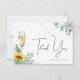 Tarjeta de agradecimiento para despedida de soltera con girasoles y champán