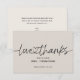 Simple minimalista guión moderno "gracias" con un corazón que conecta las palabras tarjeta de agradecimiento de despedida de soltera. Personalice o elimine el texto para el mensaje escrito a mano en el reverso.