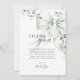 Tarjeta de agradecimiento para Despedida de soltera con lazo de vegetación. Este elegante diseño presenta un lazo verde suave que simboliza el hermoso viaje de “atar el nudo”, agregando un toque significativo a su celebración, perfecto para una futura novia que valora la sofisticación y la simplicidad.