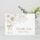 Eleva tu celebración con nuestra tarjeta de agradecimiento para despedida de soltera con perlas. Con delicadas flores boho chic en crema y tonos terrosos pintadas a la acuarela y adornadas con hermosas perlas y copas de champán con polvo de oro, esta colección emana sofisticación atemporal. Perfecta para un desayuno o brunch con champán, esta colección establece el tono para una reunión inolvidable llena de risas y amor.