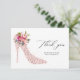 La tarjeta de agradecimiento de Despedida de soltera con tacones y flores rosadas con letra script es creada por szdesign.