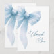 Agrega un toque de encanto suave a tu agradecimiento después de la fiesta con esta tarjeta de agradecimiento para baby shower Coquette Blue Bow Bridal. Con un delicado lazo azul pastel, flores sutiles y letra elegante, esta tarjeta complementa perfectamente un tema de baby shower femenino y romántico. Ya sea que estés agradeciendo a los invitados por su amor, presencia o regalos atentos, esta tarjeta transmite tu mensaje con un estilo y dulzura atemporales.