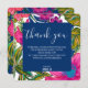 Esta tarjeta de agradecimiento de despedida de soltera floral y botánica presenta flores de acuarela en colores rosa, morado y melocotón y hojas en tonos brillantes de verde con rosa caliente de fondo. Una invitación de despedida de soltera floral colorida perfecta