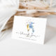 Tarjeta de agradecimiento para Despedida de soltera Dusty Blue con flores, perlas y Prosecco