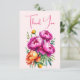 Plantilla de tarjeta de agradecimiento de despedida de soltera elegante con peonías magenta rosa melocotón, colores vibrantes y audaces para funciones coloridas de primavera y verano