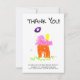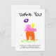 Haz que tus clientes sonrían con esta tarjeta de agradecimiento de dibujo de casa linda. Esta tarjeta fue diseñada por mi nieta Parker usando sus colores favoritos, rosa, naranja y verde. La plantilla está configurada para usar la obra de arte existente o subir tu propia obra maestra. La parte trasera contiene el crédito del artista y tiene mucho espacio para tu mensaje personal.