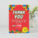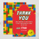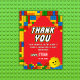 Esta alegre tarjeta de agradecimiento fue creada para terminar el gran día de tu pequeño constructor con una sonrisa. Inspirada en patrones de bloques brillantes y colores juguetones, añade un toque divertido a tu gratitud. ¡Perfecta para enviar un cálido agradecimiento a los invitados que ayudaron a hacer que la celebración sea inolvidable!