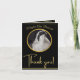 Tarjeta de agradecimiento para funeral con espacio personalizado para foto y biografía. Tarjeta de agradecimiento por simpatía personalizada negra para memorial o funeral con un marco dorado para una foto de su ser querido.