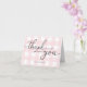 Tarjeta de agradecimiento doblada de gingham rosa