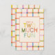 Envía gratitud alegre después de la celebración de tu pequeño con esta Tarjeta de Agradecimiento por el 2º cumpleaños "Two Much Fun". Con un borde de plaid pastel colorido y tipografía juguetona, este diseño es perfecto para cualquier tema de fiesta neutral o brillante. Personaliza con el nombre y mensaje de tu hijo para crear un recuerdo memorable para amigos y familiares. Un toque final encantador para una celebración de segundo cumpleaños "Dos Mucho Diversión".
