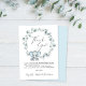 Cuta tarjeta de agradecimiento a la ducha de un niño pequeño con un diseño elegante con un toque de corazón y una acuarela de un elefante bebé azul pastel en una guirnalda de vegetación eucalipto. Personaliza tu mensaje de agradecimiento y agrega tu(s) nombre(s) en un script de firma, o deja en blanco una nota manuscrita.