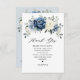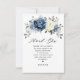 Tarjeta de agradecimiento de ducha de novia floral azul polvoriento que presenta un ramo elegante de azul marino, azul real, blanco, dorado, champán marfil, rosa color rosa, capullos de flores de ranunculus y hojas de eucalipto verde salvia y boquet de acuarela elegante. Por favor, contácteme para cualquier ayuda en personalización o si necesita cualquier otro producto con este diseño.