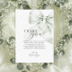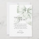 Tarjeta de agradecimiento para Ducha de Novia con Lazo Verde. Este diseño elegante cuenta con un suave lazo verde salvia que simboliza el hermoso viaje de “atar el nudo”, agregando un toque significativo a su celebración, perfecto para una futura novia que valora la sofisticación y la simplicidad.