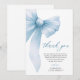 Agregue un toque de encanto suave a su gratitud después de la fiesta con esta Tarjeta de Agradecimiento de Ducha de Novia Coquette Arco de Azul. Con un delicado lazo azul pastel, flores sutiles y letra elegante, esta tarjeta complementa perfectamente un tema de ducha de novia femenino y romántico. Ya sea que esté agradeciendo a los invitados por su amor, presencia o regalos atentos, esta tarjeta transmite su mensaje con estilo atemporal y dulzura.