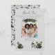 Esta elegante tarjeta de agradecimiento de ducha de novia irlandesa gótica presenta ilustraciones temáticas irlandesas y góticas dibujadas a mano en tinta negra, mostrando una calavera adornada con rosas verdes, hojas, bayas, flores silvestres y tréboles verdes. La parte posterior presenta un patrón coincidente con estos mismos elementos.