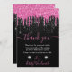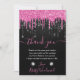 Tarjeta De Agradecimiento Dulce Purpurina de goteo negro y rosa 16