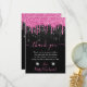 Diseño de purpurina de goteo rosa y negro brillante con fondo negro y diamantes