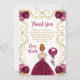 Tarjeta De Agradecimiento Dulces 16 Princesa Cabello Rojo Borgoña