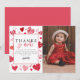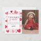 "Prepárate para dar las gracias con estas tarjetas de agradecimiento de la fiesta de cumpleaños Sweetheart. Estas tarjetas de agradecimiento son perfectas para todos los cumpleaños de febrero, en el Día de San Valentín o cerca de él. Con un diseño divertido y moderno con una variedad de corazones de acuarela rojos y una foto de la cumpleañera, seguro hará que tus invitados sientan el amor.