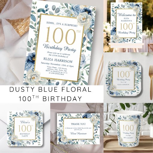 Dusty Blue Floral 100th BirthdayDiseñado por Natalie