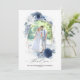 Boda de marco dorado de flores azul turbio y azul marino gracias tarjeta de foto
