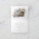 Elegante marco floral color agua polvoriento jardín azul, tarjeta de agradecimiento boda. Características, espacio de fotos único dentro, gráfico de color gris "Gracias" y líneas de texto de plantilla para sus nombres y mensaje personalizado.