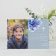 Esta elegante tarjeta de confirmación botánica azul polvoriento color agua se puede personalizar con la foto especial de su hijo y gracias mensaje establecido en la tipografía de la moda. Diseñado por Thisisnotme©