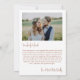 Dale a tu familia y amigos un sincero agradecimiento por estar ahí por ti en tu día de boda - y en el viaje hacia ese momento mágico donde celebrabas tu amor y te convertiste en esposo y esposa. Elige dos de tus fotos bodas favoritas y agrégalas a esta plantilla de personalizable fácilmente. Cambie el texto para convertirlo en el suyo propio, o simplemente cambie los nombres, la ubicación y la fecha del boda si desea mantener el mensaje de agradecimiento preescrito. Las tarjetas de agradecimiento del boda de fotos presentan un diseño sencillo pero romántico con texto marrón ocre rojo contra un fondo rosa polvoriento y romántico, con un guión encantador de escritura a mano para un toque personal.