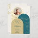 Anuncie el bautismo de su hija con esta sofisticada y bellamente diseñada Tarjeta de agradecimiento. Con una armoniosa mezcla de oro mutado y verde azulado profundo, este diseño irradia elegancia y gracia. El delicado arte de la línea floral aporta un toque sutil a la naturaleza, complementando perfectamente la disposición arqueada. Una combinación refinada de fuentes serif y script modernas mejora la estética atemporal. El fotograma personalizado de la parte superior hace de esta invitación un conservador significativo. Ideal para bautizos, bautizos y ceremonias religiosas, esta Tarjeta de agradecimiento establece el tono perfecto para una celebración sentida. B014