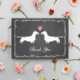 Las siluetas blancas del Dachshund con el corazón rosado en la pizarra diseñan el fondo. Este perro lindo de la salchicha de Frankfurt que el boda del amante le agradece cardar puede ser personalizado con su propio mensaje. Un perfecto le agradece cardar por los amantes de Doxie del recién casado para enviar a todas sus huéspedes. Mundo del Doodle de Jenn de la visita para aún más productos temáticos del planeamiento del boda del Dachshund.