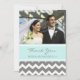 La foto de encargo de la boda le agradece por las tarjetas de regalo en azules turquesas ligeras elegantes, grises carbones, y el modelo moderno y de la diversión blanco del galón de zigzags. Completamente adaptable, bilateral, disponible en muchos productos a juego para todas sus necesidades del boda o del fiesta. Éntrenos en contacto con para pedir un cambio del color o para crearlo para requisitos particulares.