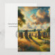 Esta tarjeta de arte proviene de un cuadro inpresor llamado "El círculo de piedra en la tarde / De Stenenkring en de Middag", hecho exclusivamente para Bertie & Groves. Puedes estar seguro de que no encontrarías una tarjeta de arte con esta pintura en ningún museo de Europa, y que solo se vende en nuestra tienda Zazzle. Encuentro la pintura en esta tarjeta de arte como apacible, con tonos espirituales que no imponen ninguna creencia al espectador, sino que simplemente te invita a llamar tu atención hacia dentro. Esta tarjeta de arte traerá una energía tranquilizadora y belleza a la casa de la persona que la recibirá. Este cuadro le recordará el Círculo de Piedra de Avebury y la hermosa campiña de Wiltshire.