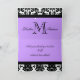 La boda blanco y negro del damasco le agradece las tarjetas con nombres del monograma y de novia y del novio y color de acento púrpura. El personalizar en el interior con su información y le agradece texto usando los avisos O hace clic en el botón del "personalizar" para más opciones que corrigen. Disposición y diseño de Elke Clarke ©2010. Modelo del damasco autorizado para el uso comercial. Ninguna duplicación permitida.