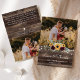 Expresar su agradecimiento con esta carta de agradecimiento de este boda rústico de madera de girasol. El diseño está decorado con hermosos girasoles amarillos color agua y rosas rojas burdeos con luces de cuerda sobre un fondo rústico de madera de granero. Personaliza con dos fotos, tus nombres y tu mensaje personal.