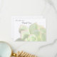 Este plano elegante veraniego del estilo del moderno-vintage (el no-doblar) le agradece ofrece una foto semitransparente de un succulent pasado de moda (succulent del aeonium). Las "gallinas y los polluelos a veces llamados," el nombre oficial son Sempervivum, que viven los medios "para siempre"--un sentimiento hermoso para una boda. Me dicen que los floristas refieren a esto como Echeveria. Mostrado en el papel del fieltro--usted puede cambiar al lino si usted prefiere blanco a un tono de marfil. Usted puede también cambiar el tamaño del papel.