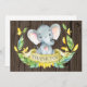 Tarjeta De Agradecimiento Elefante Bebé Amarillo y Gris Rústico Lindo