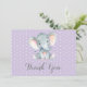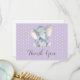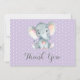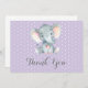 Tarjeta De Agradecimiento Elefante Bebé Niña Lindo Morado y Gris