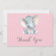 Tarjeta De Agradecimiento Elefante Bebé Niña Lindo Rosa y Gris