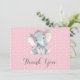 Tarjeta de Agradecimiento Elefante Bebé Niña Lindo Rosa y Gris